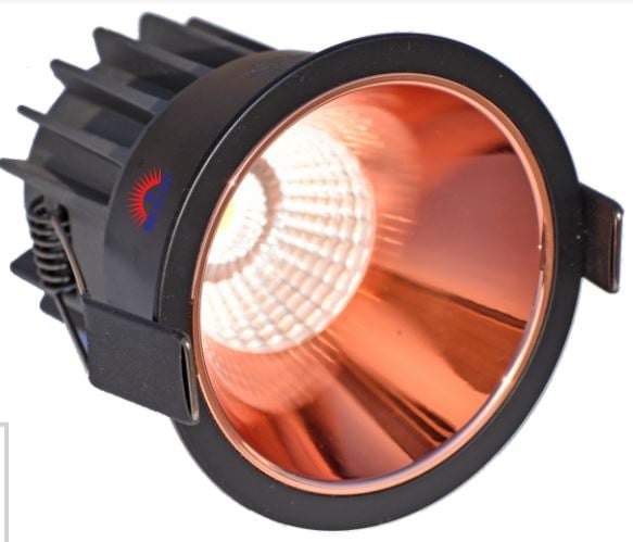 Recessed COB downlight made up of die-cast aluminium housing & robust heat sink for excellent thermal management, also it offers a wide choice of option for different color reflectors (Rose Gold, Gold, Silver white & Black).